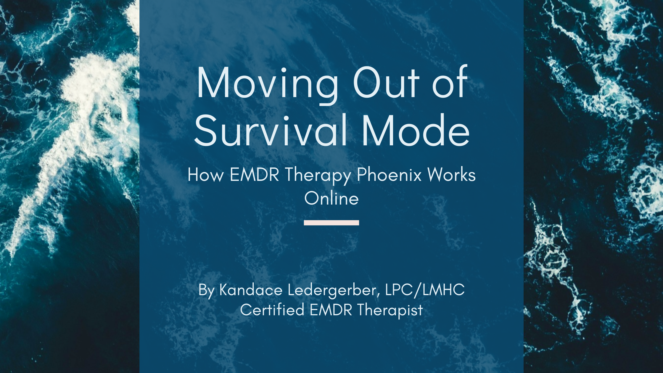 Photo Description: Graphic header with ocean waves and text that reads “Moving Out of Survival Mode: How EMDR Therapy Phoenix Works Online” by Kandace Ledergerber, Certified EMDR Therapist.